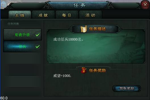 游戏中任务分为主线任务和日常任务。玩家完成主线任务列表中的达成条件,即可在该页面领取到对应的务的完成奖励。