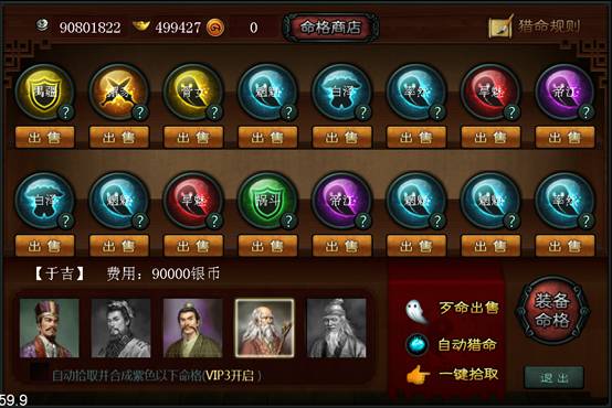 7.自动猎命:系统自动拜访仙人直到填满全部命格,歹命出售:系统将自动出售无价值命格